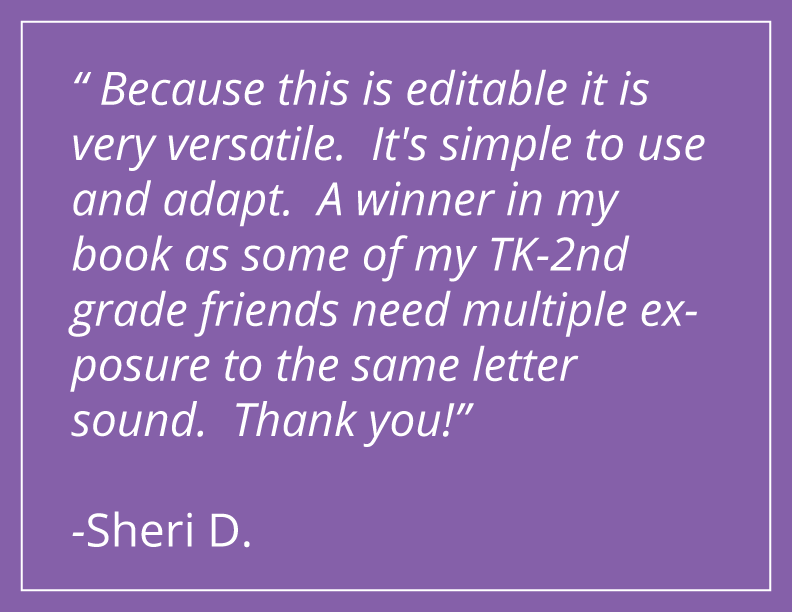 ⭐⭐⭐⭐⭐ "LOVED these alphabet books and I loved that it was editable with ideas so that we could use the materials that were available or easy to find for us. Thanks for a great resource!"