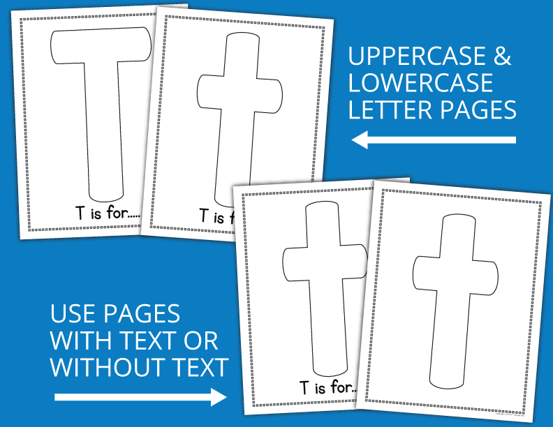 Use the printable pages to make a custom ABC book, for art and craft projects, playdough mats, activity mats, coloring pages and more.