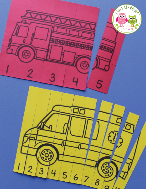 Teach numeral recognition and number order with these community helper theme number puzzles. 1-5, 1-10, 1-15 puzzles are included for ALL designs....in BOTH full color and black and white versions. Perfect for your community helper theme unit, fire safety theme unit, back to school theme unit, occupations theme unit or lesson plans. Use in your math centers or work stations in preschool, pre-k, and kindergarten.