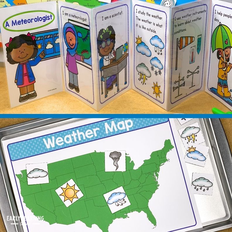 Transform your dramatic play center into a weather station. Perfect for your weather theme unit or lesson plans, you can teach your kids about the weather and the climate in a play-based, DAP way. Your little scientists can learn science, math, and literacy through pretend play. Use this set in your dramatic play area or in your science learning center.