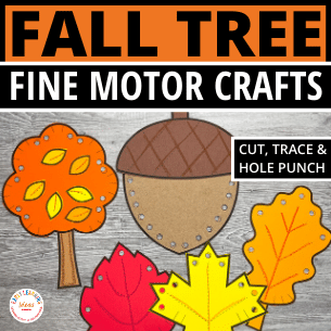 Do your kids struggle because they have low fine motor skills? Use these fun and motivating fall tree themed crafts to help them develop their hand strength, pencil grasp, and cutting skills. Your kids will have so much fun making this fall tree craft, fall leaves craft, and acorn craft they won't even realize they are building fine motor skills, scissor skills, and grip strength.