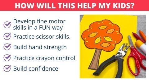 ➡️ YOUR KIDS CAN PRACTICE THESE FINE MOTOR ACTIVITIES WHILE COMPLETING THE FUN FALL CRAFTS: