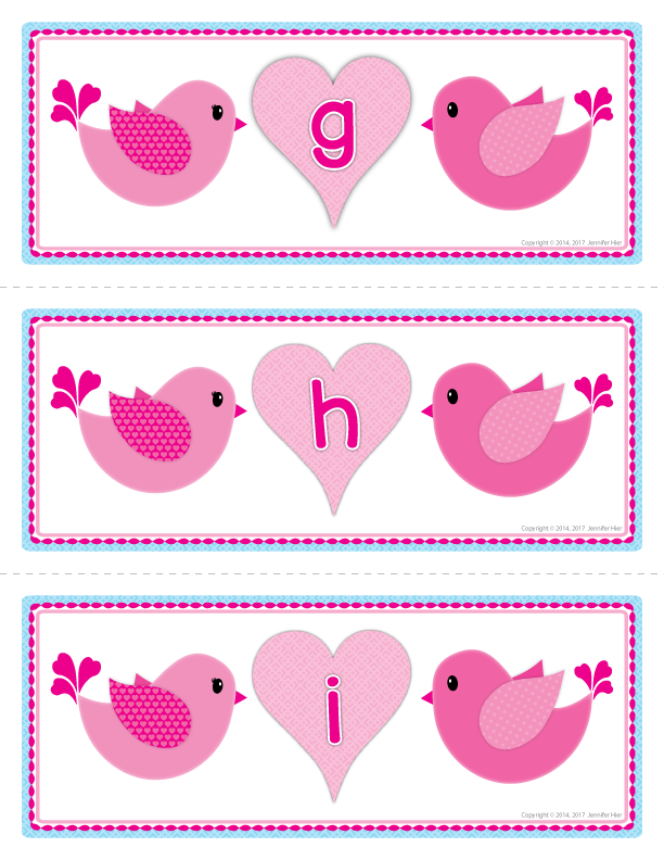 The love bird matching cards fit perfectly in a letter-sized envelope. Simply label a set of envelopes with a set of heart letter cards and your children can play post office!