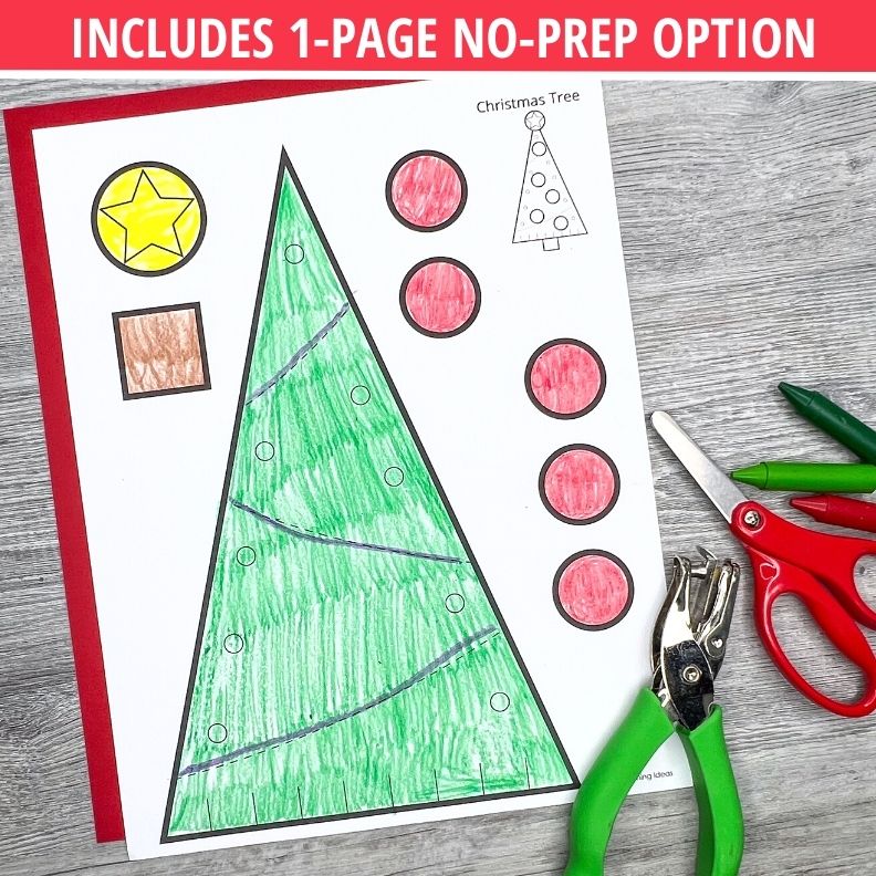 The easy-to-differentiate Christmas fine motor skills craft activities are perfect for your kids in your preschool, pre-k, kindergarten, 1st grade, SPED, and occupational therapy classroom. The set includes 2 printing options. A one-page no-prep option is super easy to prep…just print and go. You can also print the parts on individual pages.