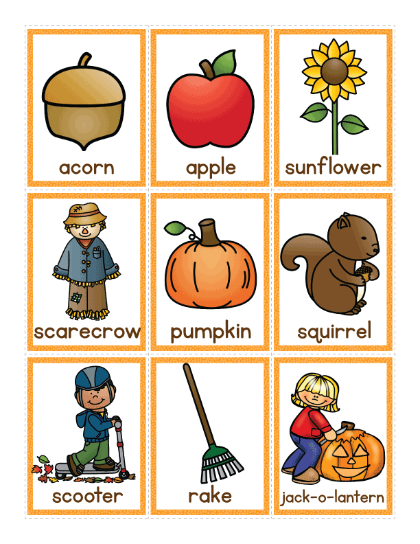Children can practice segmenting and counting syllables in autumn-themed words as they wave their hands in the air, snap their fingers, do leg lifts, tippy-toe, and do jumping jacks. Word cards can also be sorted onto the sorting mats or into sorting containers. Activity ideas are included.
