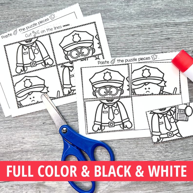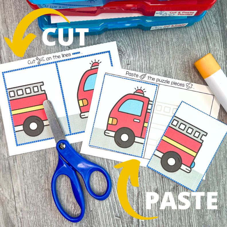 Perfect for Fire Prevention week your study of community helpers, use this set of community helpers cut and paste puzzles to boost your kids' cutting skills. The cutting and gluing practice activities are easy-to-prep and provide a fun and motivating way for your kids to get cutting practice with scissors. Whether they are new at using scissors or have some experience, the set includes a variety of levels to help your kids build skills, improve cutting accuracy, as well as build confidence and endurance.