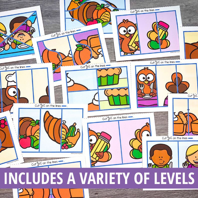- These Thanksgiving cut and paste puzzle activities are easy to prep.