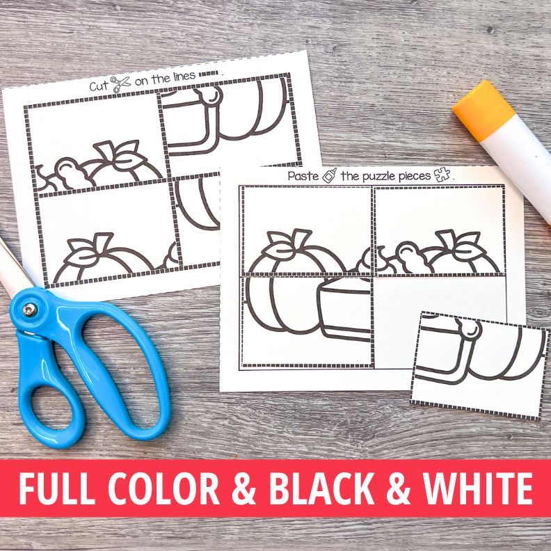 These fall Thanksgiving cutting practice puzzle activities are perfect for your preschool, pre-k, kindergarten, OT, occupational therapy, special education classroom, or at-home learning.