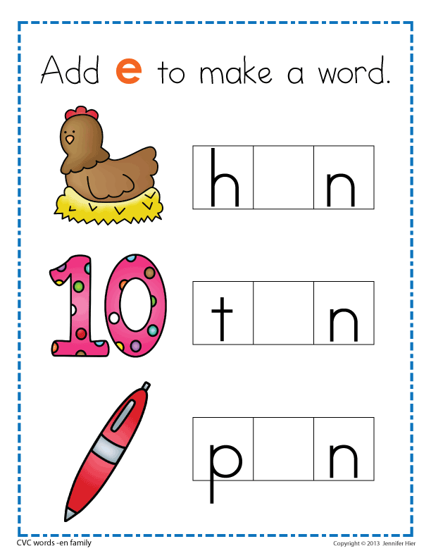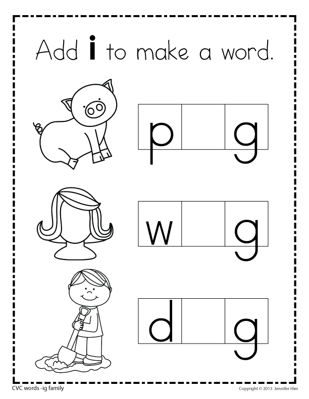 This product contains 17 CVC word family worksheets and two pages of vowel tiles in BOTH full color and B&W.