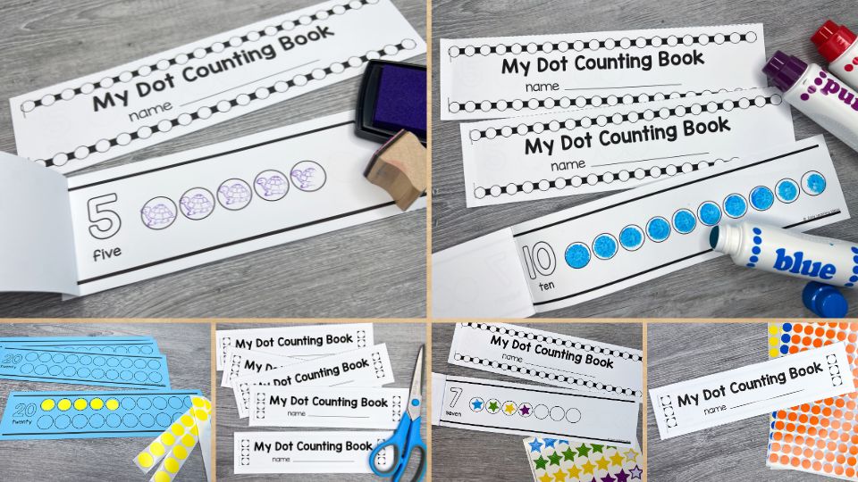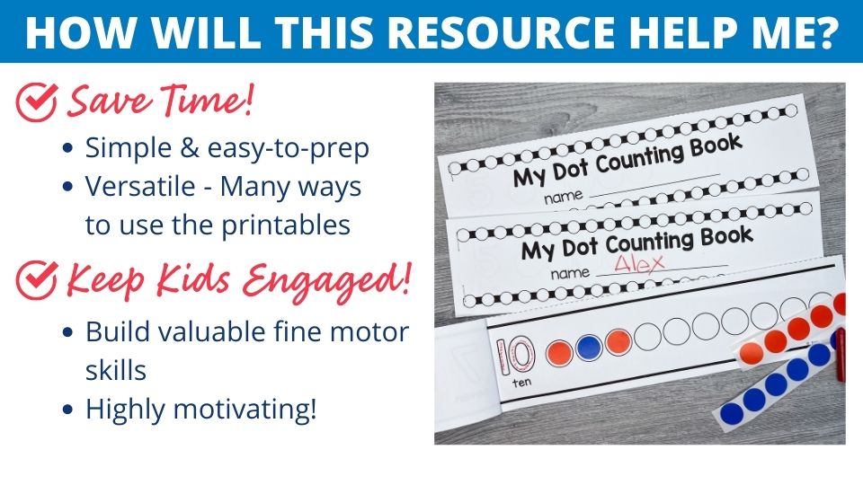 This set includes two sizes of dot sticker counting books (for large and small dot stickers). Use the pages individually for number activities in your math center, or bind them together to make a hands-on number book for your kids. The activity is engaging for kids and easy to prep for you.