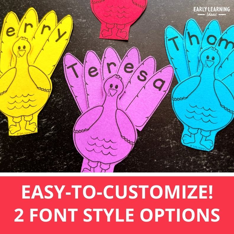 Looking for an exciting and easy Thanksgiving turkey craft and name activity for your kids? With this easy-to-use turkey template, you can easily make customized Thanksgiving turkey name puzzles for your kids in preschool or pre-k. Use these cute printable turkey activity for a name practice activity or a fun Thanksgiving turkey craftivity or Thanksgiving bulletin board decor in your preschool, pre-k, kindergarten, or special education classroom for the month of November..... your kids can have their very own plump and perky turkey!