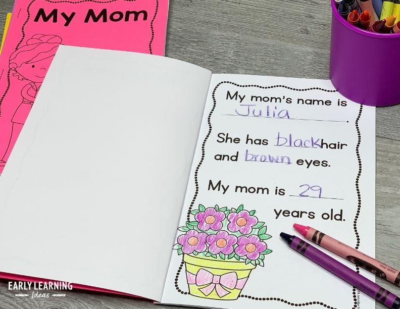 The perfect Mother's Day preschool and kindergarten activity! Help your kids create a Happy Mother's Day gift for mom. Better than Mother's Day flowers, this keepsake book is the perfect book that Mom will keep for years.