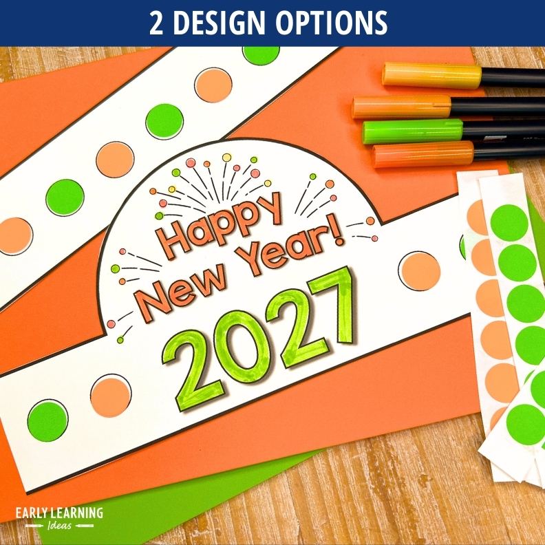 This resource includes printable Happy New Year crown templates for multiple years, so you can use it again and again: