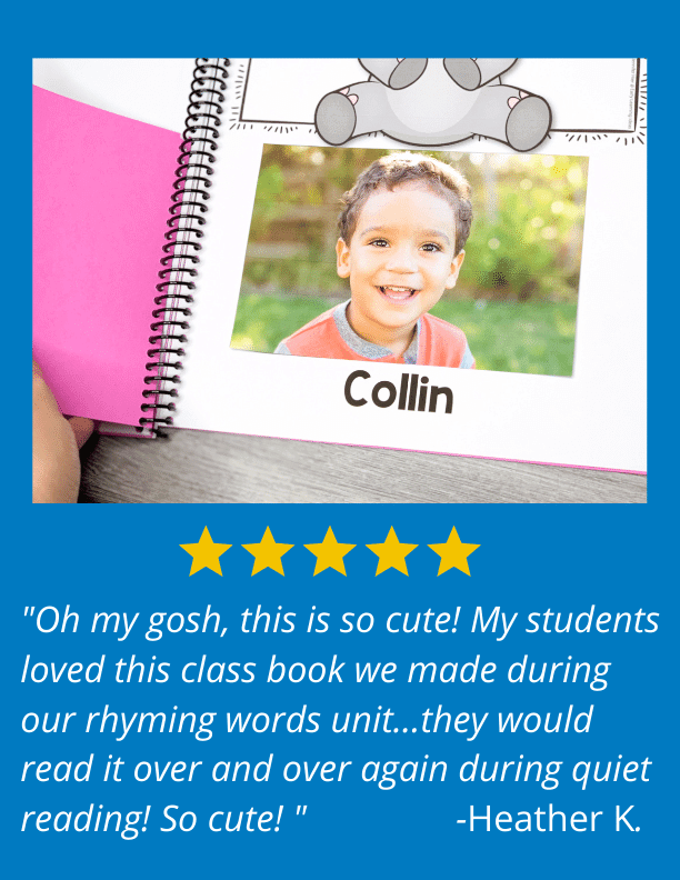 ⭐⭐⭐⭐⭐ "Oh my gosh, this is so cute! My students loved this class book we made during our rhyming words unit…they would read it over and over again during quiet reading! So cute!" - Heather K.