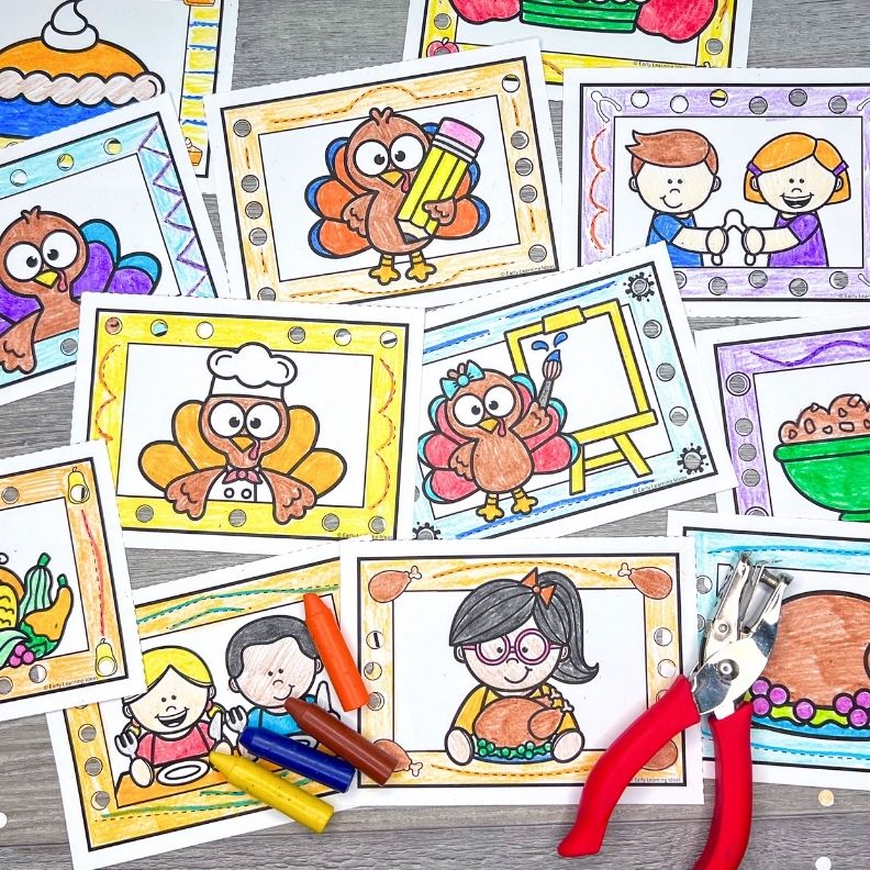 - These Thanksgiving turkey fine motor hole punch and color task card activities are easy to prep.