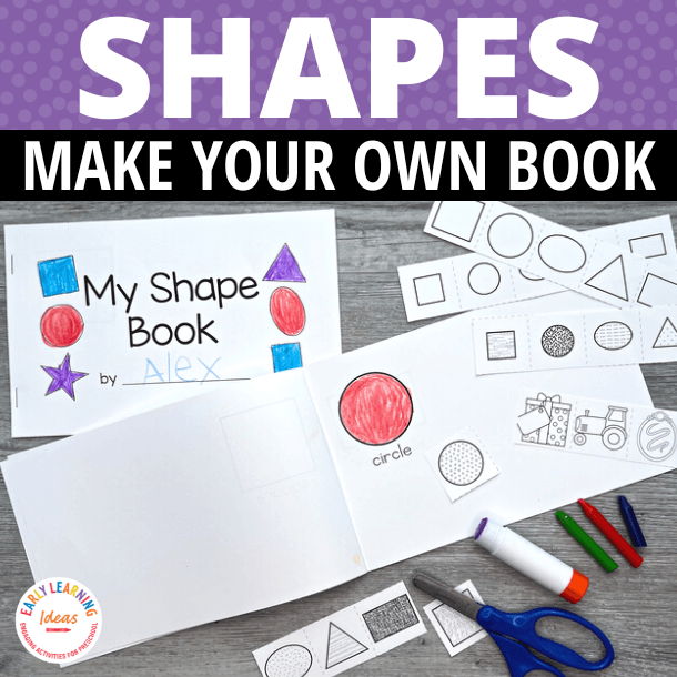 Shape book and shape sorting activity. Make your own black and white shape book activity for preschool, pre-k, kindergarten, at-home learning for preschoolers, and early childhood education.