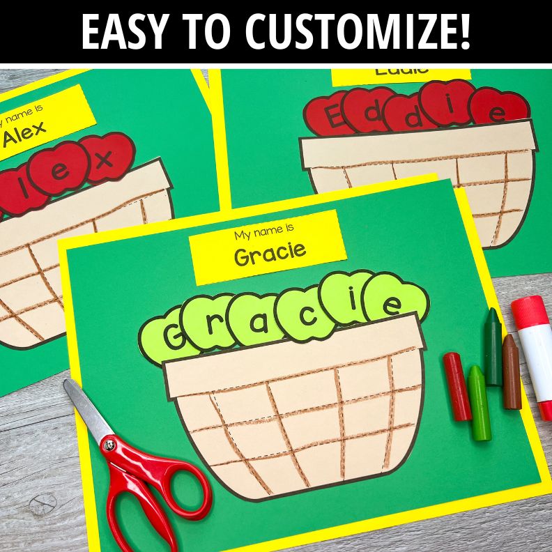 Perfect for your apple theme unit, back-to-school week, or a simple, hands-on name craft your kids will love.