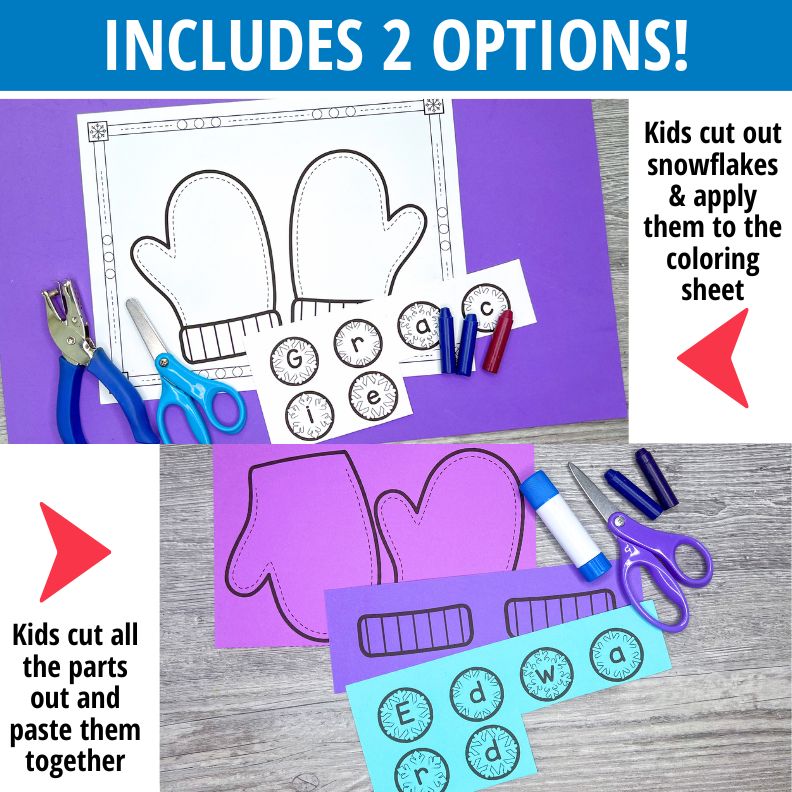 ✅ SAVE TIME! - These winter mittens name craft activities are easy to customize. There are 2 printing options to meet your needs.