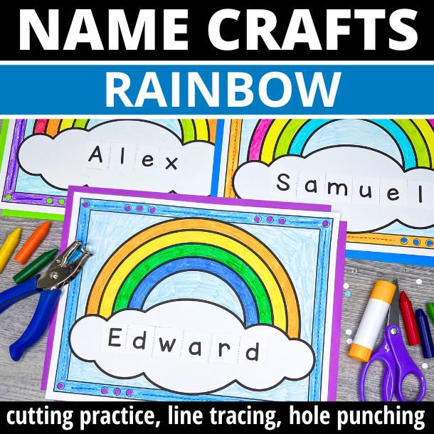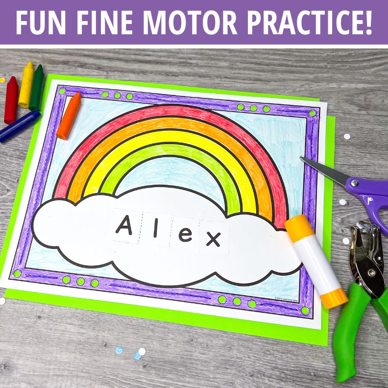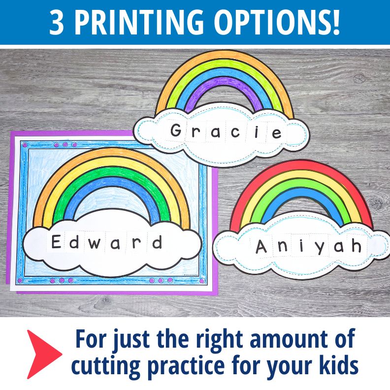 SPRING RAINBOW NAME CRAFT FOR PRESCHOOL & KINDERGARTEN - Looking for a fun St. Patrick's Day rainbow name craft that doubles as a name activity and cutting practice for your preschool or kindergarten kids? This editable rainbow name craft makes an adorable Spring, Summer, or St. Patrick's Day name project that helps kids practice name recognition, fine motor skills, and cutting — all in one engaging fall activity.