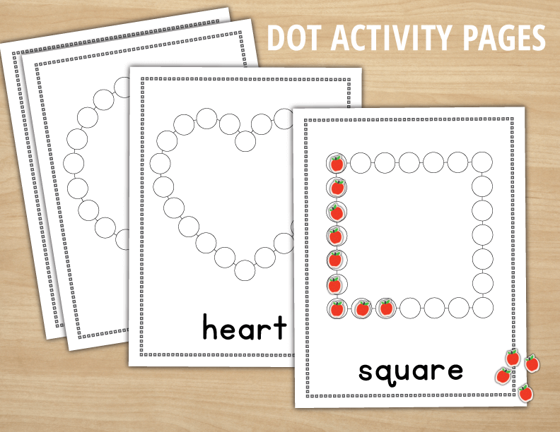 Shapes dot cards and play dough mat sets include the following shapes: