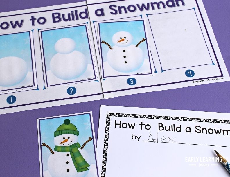 Children can practice sequencing and the concepts of first, next, last as they determine the order of steps to build a snowman. Laminate the activity to use it year after year.