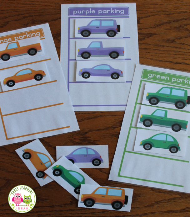 The set can be used to practice color sorting and categorizing color identification, naming colors, and as an assessment tool. Children can also sort cars by style (a great visual discrimination activity), create patterns with the cars, and practice writing color words.