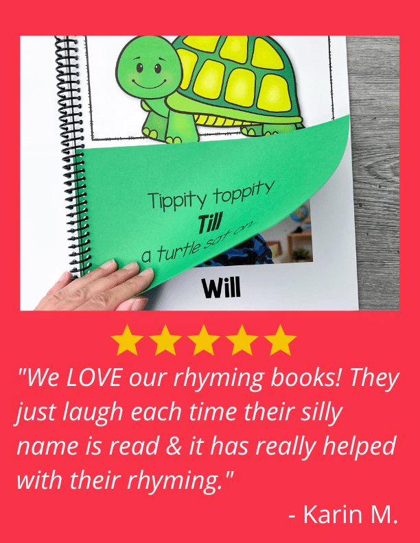 ⭐⭐⭐⭐⭐ "We LOVE our rhyming books! They just laugh each time their silly name is read & it has really helped with their rhyming. " - Karin M.
