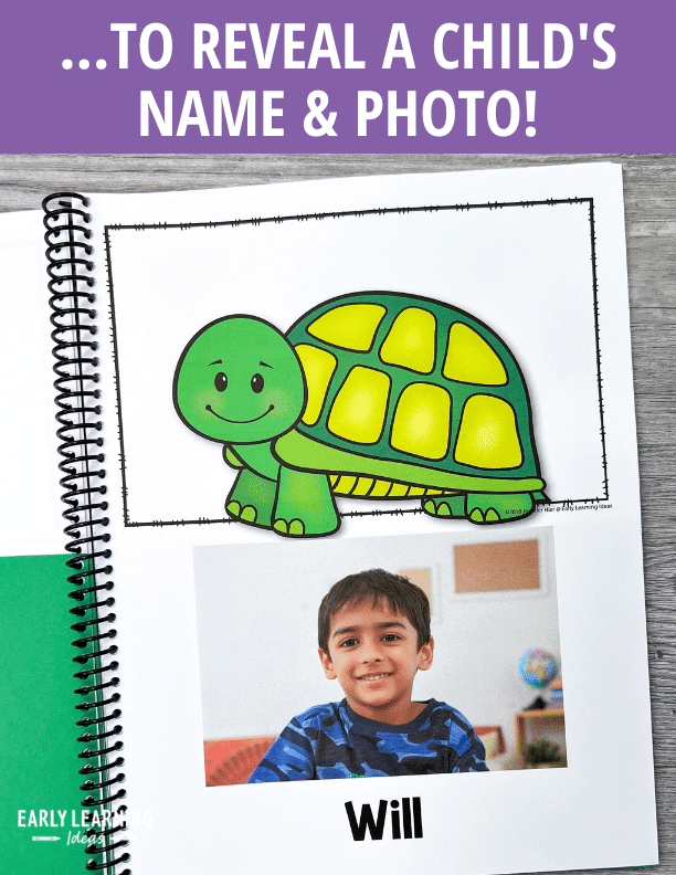 Use fun turtle interactive rhyming lift-the-flap name activity book to teach name recognition, beginning letters and sounds, and rhyming in a FUN and MEANINGFUL way. This editable emergent reader is perfect for preschool, pre-k, kindergarten, special education, RTI, early intervention, and home school classrooms.